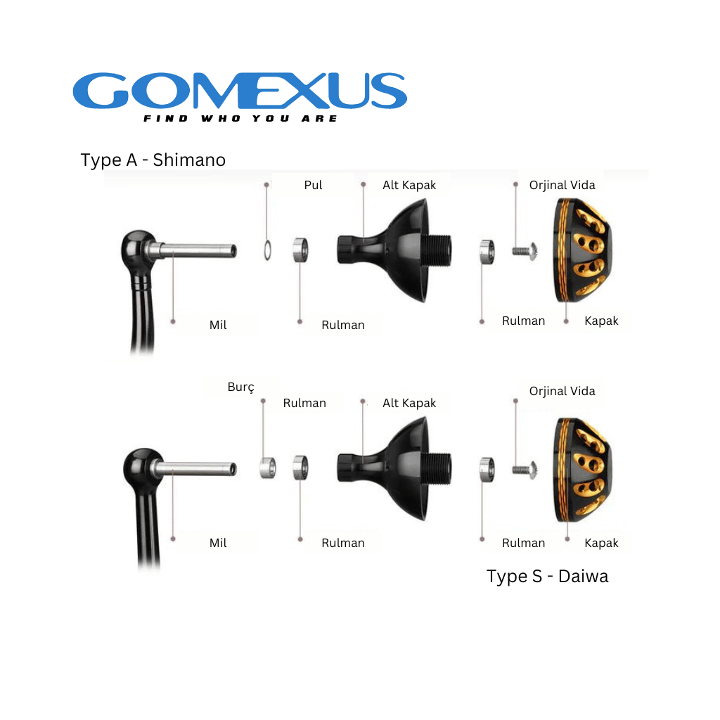 Daiwa serisi kol mili 0.5mm daha kısa olduğu için montajda gerekli özel burç da tüm Gomexus kulplarında olduğu gibi bu kulpta da sunuluyor.