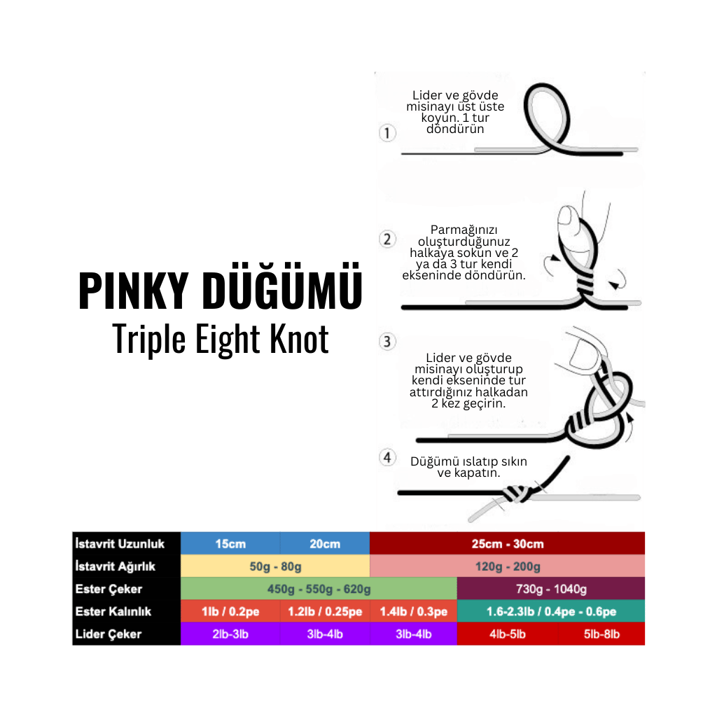 Son derece basit ve etkili bir düğüm olan Triple Eight Düğümü ile liderinizi estere uygulamanızı tavsiye ediyoruz.